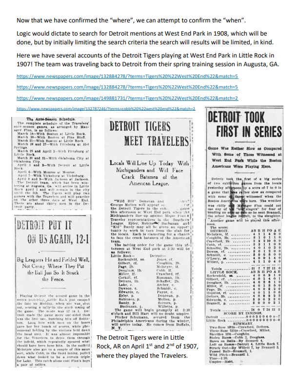 1908 Ty Cobb at West End Park, Little Rock, AR
